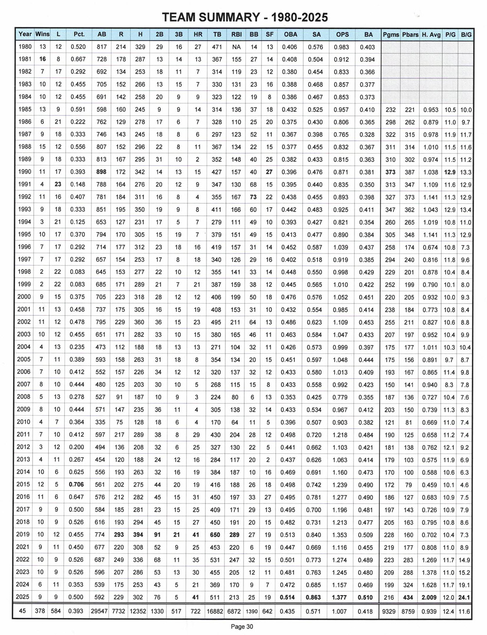 Team & Manager Records Lifetime Leaders Single Season Leaders Individual Records Leaders By Season 1980s Decade 1990s Decade 2000s Decade 2010s Decade 2020s Decade Lifetime Player Roster Lifetime Pitcher Roster Team Summary Hall of Fame Historic Hog Pictures